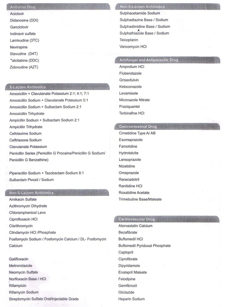 APIs Pharmaceutical Intermediates Finished Products Biochemicals Botanical Raw Material & Derivatives